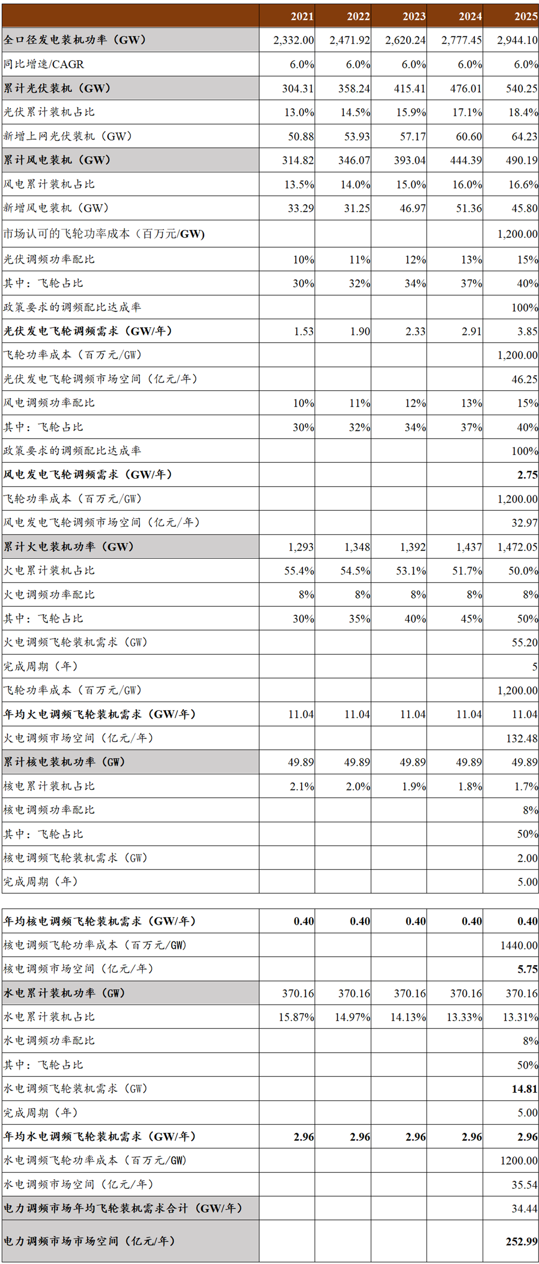 图3:2021-2025飞轮储能电力调频市场空间预测(亿元)