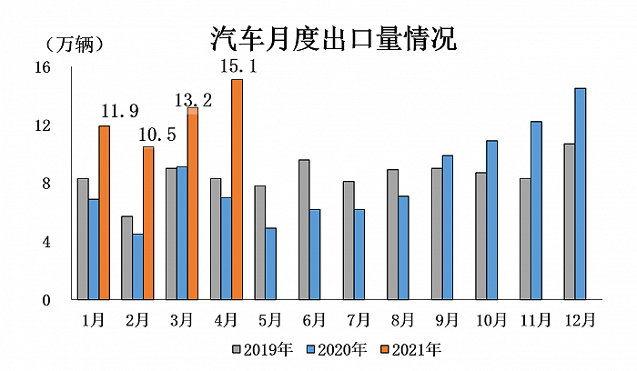 【中汽协:2021年4月汽车出口创历史新高】“中汽协会数据”微信公众号5月28日消息,据中国汽车工业协会统计分析,2021年4月,汽车企业出口15 1万辆,环比
