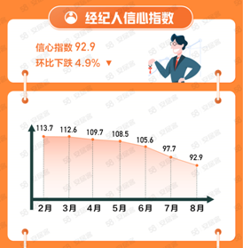 在二手房市场,经纪人对市场变化的感知最为明显。通过对券商的调研发现,2021年8月券商整体信心指数达到92.9,较上月下降4.9%;与前两个月相比,认为政府将继续出台政策限制房价的券商比例持续上升。在房源量变化方面,54.1%的券商认为2021年二手房市场挂牌量将同比增长。此外,《报告》的数据显示,岳阳、海口、苏州、呼和浩特的经纪人更愿意回答房产问题,经纪人问答数据均显示环比增长28%以上,其中岳阳排名最高。