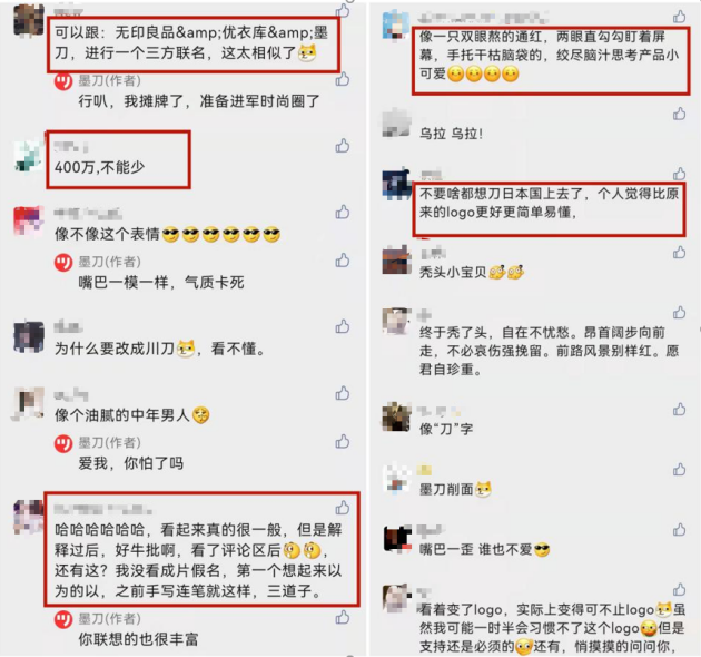 也有想象力丰富的网友,从墨刀新logo中“领悟”到“不要摸鱼”和“当心打脸”的工作激励;表示这新造型很酷,像”嘴巴一歪,谁也不爱”的歪嘴战神;更有甚者,说这秃了头的墨刀logo“像两眼直勾勾盯着屏幕、手托干枯脑袋、绞尽脑汁思考产品的小可爱”,是在映射墨刀的用户形象?