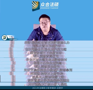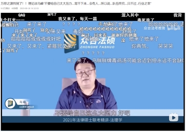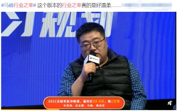 一次,有考生在马峰老师的微博下方留言求激励:“老师快点骂醒我”,马峰回“醒不了没关系的,反正有人能考得上,有人能坚持到底,法律人队伍终究会不断壮大,只不过少了你而已,或许这也是行业之幸”。