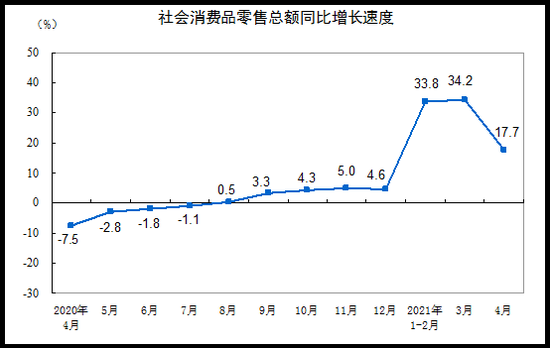 4月社会消费品零售总额同比增长17 7% 比2019年4月增长8 8%