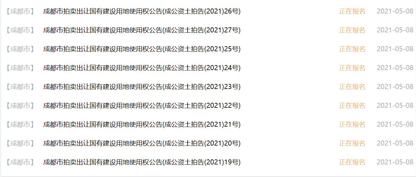 成都首批集中供地出炉:40宗地起拍总价330亿元,6月7日起分5天10场拍卖