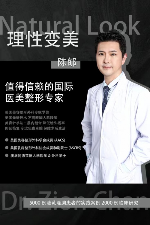 澳籍医学博士陈郇先生从业美容整形外科二十年,现为美国美容整形外科协会成员(AACS),美国乳房整形外科协会成员(ASCBS),美国美容整形外科专家博士学位,其拥有中华人民共和国外籍医师行医证执照,是中国艾尔建娜绮丽首席特聘讲师及中国强生傲偌拉精英术术者评委,主张实践学术理念的陈郇博士曾进入多所世界知名整形医科学府进行学术钻研,且在学习期间与知名教授共同开创“不离段胸大肌隆胸技术”,创始了国际隆胸领域的全新技术先河。