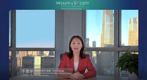 大会开始,亚洲银行家执行董事、大中华区总裁于思宇女士致欢迎辞,于思宇回顾了财富与社会品牌创立5年来,财富管理领域的发展以及市场对于ESG,可持续发展等话题的关注和变化。她在致辞中表示,财富与社会所倡导的“财富向善”的理念与中国政府提出的共同富裕相互契合。 随后,于思宇着重介绍了财富与社会企业认证项目,该项目在全球范围内审核影响力投资项目,考察项目的可持续发展潜力,并表彰行业内的最佳实践,来帮助企业和金融机构做好ESG的准备工作。