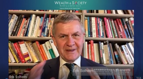 财富与社会着眼于全球范围内财富领域和社会发展的焦点问题,今年的大会邀请到了联合国前副秘书长Erik Solheim,洛克菲勒家族第四代传承人Peggy Dulany等在全球具有广泛影响力的国际嘉宾参与讨论。Solheim先生在主旨演讲中对中国在脱贫,生态文明建设等方面所取得的成就表示赞赏。他特别强调在绿色可持续领域,全球合作和保持行动一致的重要性,他介绍了美国,欧盟等世界主要参与方在绿色领域的承诺和经验,并对中国30/60目标给予了充分肯定。