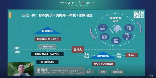 在“家族财富跨代传承与增长”环节,与会嘉宾就如何传承,传承面临的最大挑战、如何为家族企业寻求更好的治理以及如何平衡上一代人的传统和新一代的创新等话题发表了自己的看法。北京市盈科(深圳)律师事务所股权高级合伙人律师杜芹分享了如何确保家族传承的落地实施;泓湖百世全球家族办公室董事长康朝锋介绍了股权传承+境内外一体化+家族治理三位一体的家族传承解决方案;最后西南财经大学中国金融研究中心副教授潘席龙阐述了传承和共同富裕之间的辩证关系。