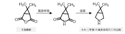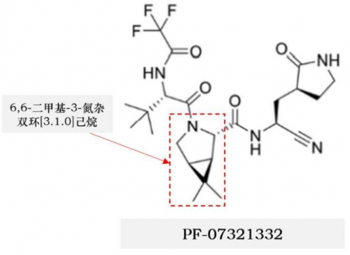 辉瑞特效药 PF-07321332结构中,起到蛋白酶抑制剂核心功能的是“氮杂双环”片段:该片段不仅作用关键,而且合成难度大。PF-07321332由数个片段组成,包括三氟乙酰胺、氰基、6,6-二甲基-3-氮杂双环[3.1.0]己烷(简称“氮杂双环”或“54-9”,以下简称“氮杂双环”)等。其中,氮杂双环上具有多个氨基酸的结合位点,是起到抑制病毒复制功能的核心片段。氮杂双环生产的难度体现在:传统工艺成本高、收率低、易爆炸。采用传统工艺生产氮杂双环,如果是几百公斤小批量生产是可行的,但要工业化放大——满足全球新冠患者治疗数百吨一年起步的供应量,难度极大。因此,量产氮杂双环的核心不在于是否具备生产能力,而在于能否对其工艺路线进行优化,使其能适应工业化批量经济性生产。