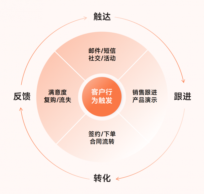 3.组织协同化:打破部门围墙,销售能实时查看客户前期行为轨迹,市场能依据销售反馈优化内容方向,让线索有效沟通率大幅提升,达成高效统一的协同效应。