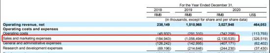 与此同时,销售费用也是一路猛增。招股书显示,2018年、2019年及2020年,水滴的销售费用分别为1.9亿元、10.6亿元及21.3亿元,持续维持在营业收入的7成左右。水滴表示,销售费用的增长原因之一就是获客(marketing expenses for user acquisition and brand building)。