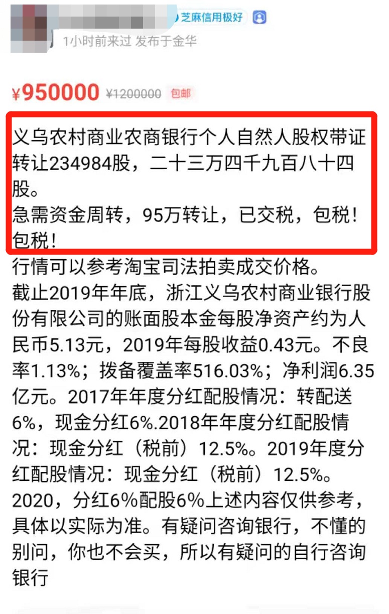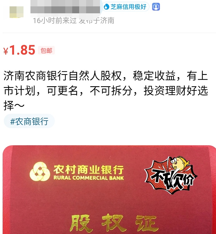 万万没想到,在闲鱼上居然能买到银行股权!