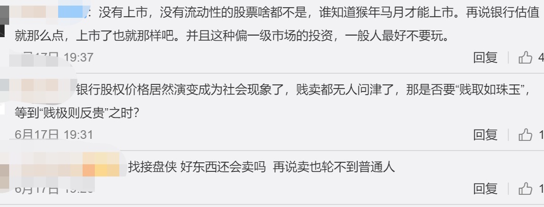 网友震惊:银行股权居然贱卖都无人问津了?