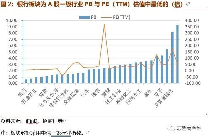 招商证券(600999,股吧)的分析师此前指数,银行板块估值为A股一级行业中最低。截至2021年5月7日收盘,银行板块(中信银行(601998,股吧)指数)PB估值为0.65倍,PE(TTM)估值为6.5倍,均为A股一级行业中最低。