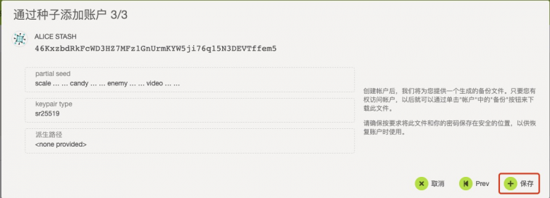 为了方便辨认绑定关系,建议加上 账号 stash / 账号 controller 这样成对的后缀(也可以用任何你喜欢的词语做区分)。