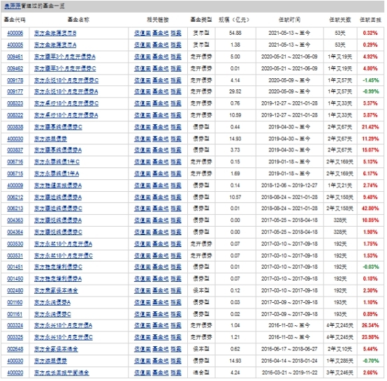 吴萍萍累计任职时间超过5年,现任基金资产总规模113.11亿元,任职期间最佳基金回报为42.80%。吴萍萍此前管理过的基金也大多是债基、货基等固收品种,其曾管理过3只混基,分别是东方成长回报平衡混合、东方合家保本混合、东方荣家保本混合,但任职回报均低于6%。
