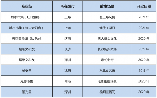 自2019年起,商业地产步入调整期,同时也迎来了主题商业街区发展的3.0时代。购物中心同质化竞争日益加剧,全场景思维似乎是个双赢的破局方法。通过创造沉浸式空间,让消费体验有质的飞跃。体现在商业主题区上,一方面是公共区域的设计、主题装置、音乐等硬件氛围的打造。另一方面,则是对于品牌租户的选择,以及租户店铺形象、产品特色与主题区域的匹配度。这个阶段的主题商业街区更突出故事性,吸引全年龄段的消费顾客。