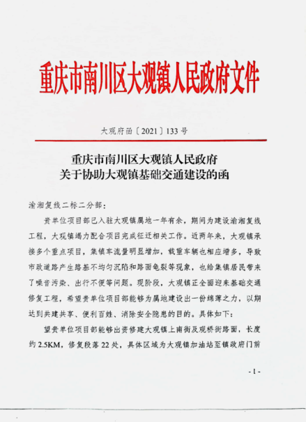 中建铁投集团发展公司重庆分公司渝湘项目二分部在我为群众办实事系列活动中,再添新作。 9月17日,大观镇政府希望中建铁投集团发展公