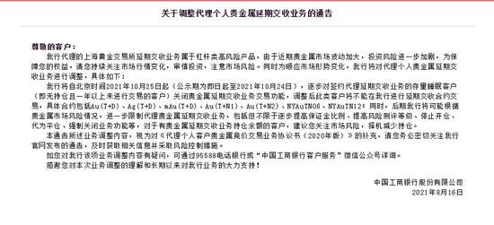 兴业银行:贵金属交易业务展期合约将调整个人客户交易保证金率