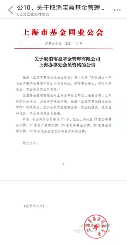 因3年以上未缴会费,宝盈基金被上海基金同业公会取消会员资格!公司回应:已启动自查