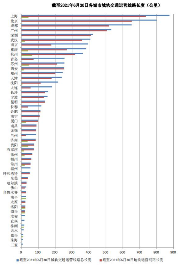 另据统计,2021年上半年新增运营路线长度为427.94公里,仅占2020年全年的34%。城轨项目中标总额仅占2020年全年6300亿中标总额的27.8%。