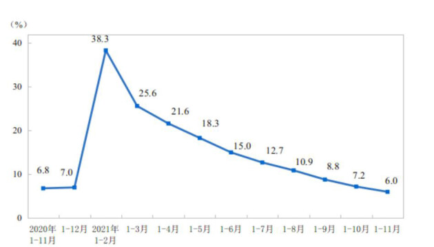 根据统计局数据,2021年1—11月份,全国房地产开发投资137314亿元,同比增长6.0%;比2019年1—11月份增长13.2%,两年平均增长6.4%。其中,住宅投资103587亿元,增长8.1%。