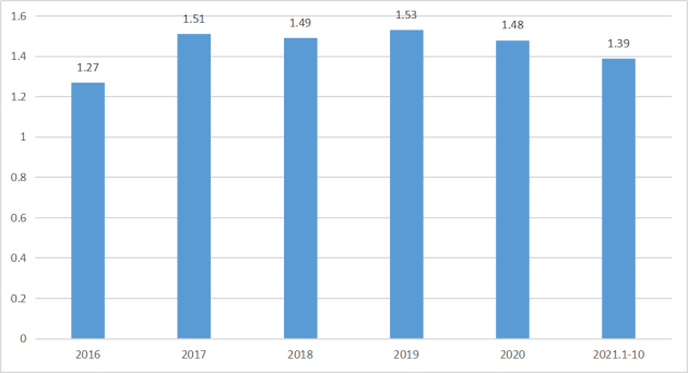 随着国内经济秩序的恢复,居民消费意愿有所增强,2021年1-10月家电产品的消费增速较2020年同期有明显回升,但仍未回到2019年的水平。同时,受原材料价格上涨及芯片短缺影响,企业为对冲成本提高终端售价,导致消费需求受抑制;疫情局部反复导致线下实体店业绩复苏不及预期;下半年的限电也对家电行业形成一定压力。