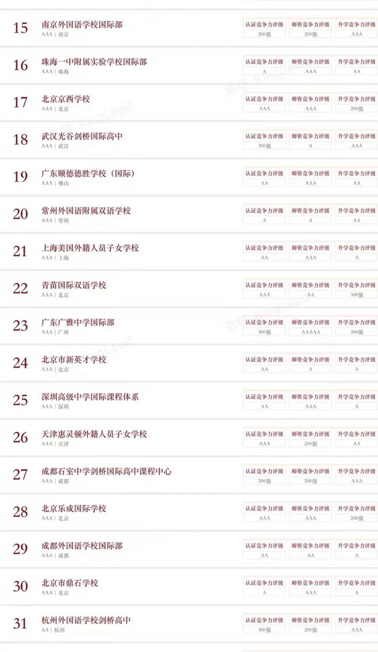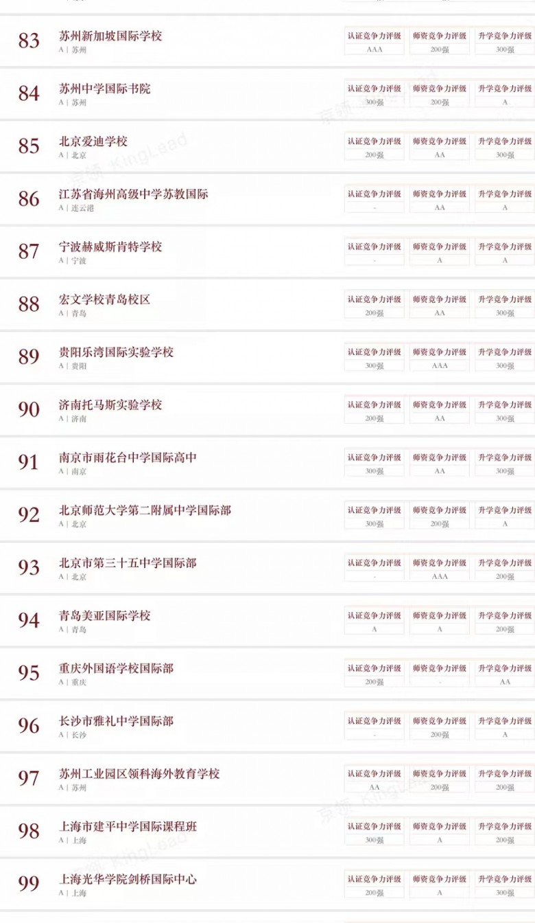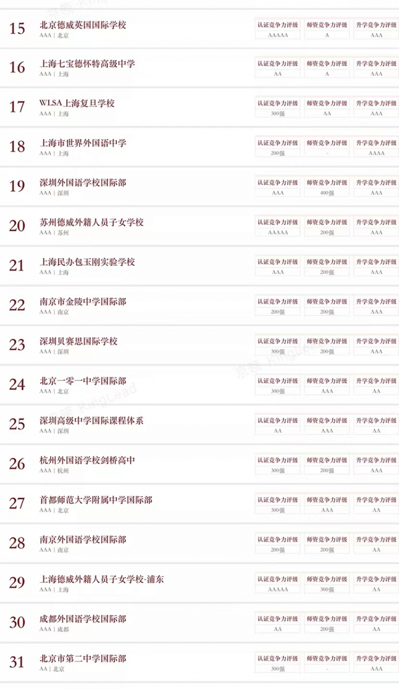 京领已经形成系统专业的学校评估体系,从品牌、创新、特色、竞争力等多个维度形成了四大榜单体系,其专业性受到众多国际学校校长、教育同仁的认可,成为广大家长的有效参考,并获得美国、英国、新加坡等诸多海外知名媒体的广泛报道。