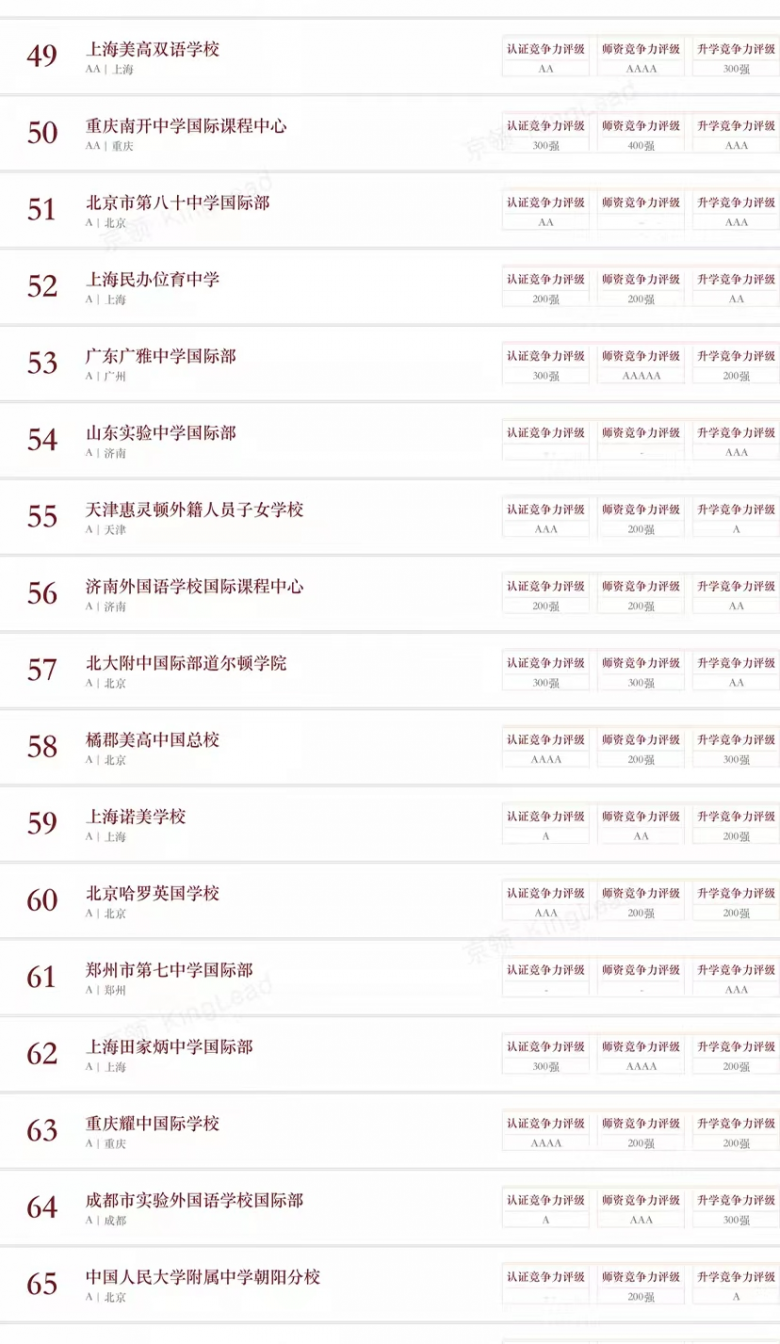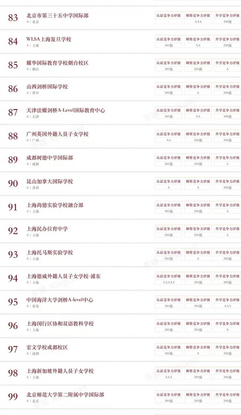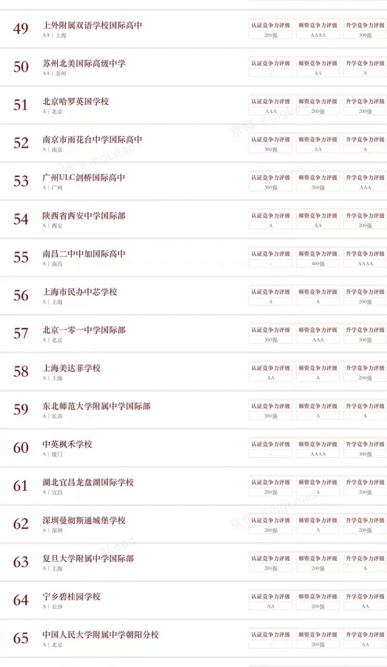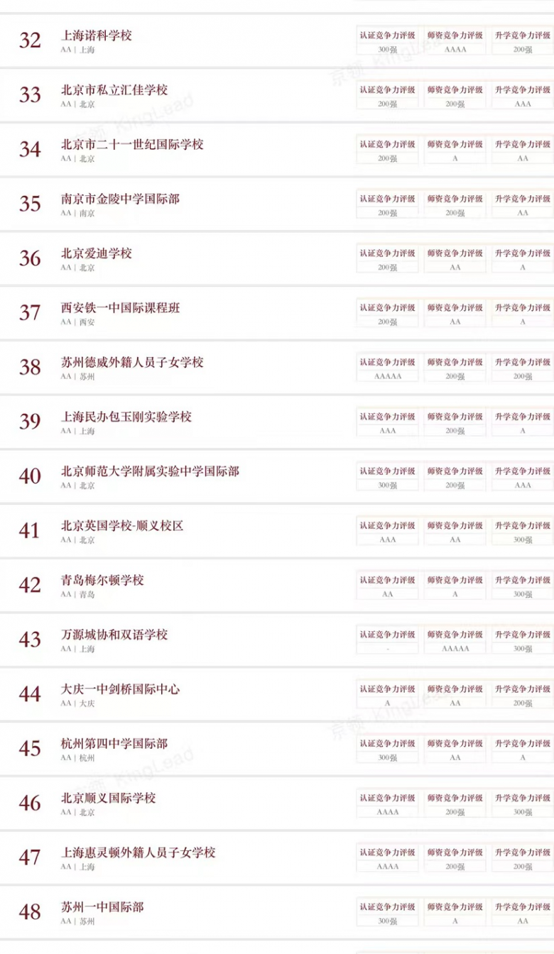 京领已经形成系统专业的学校评估体系,从品牌、创新、特色、竞争力等多个维度形成了四大榜单体系,其专业性受到众多国际学校校长、教育同仁的认可,成为广大家长的有效参考,并获得美国、英国、新加坡等诸多海外知名媒体的广泛报道。