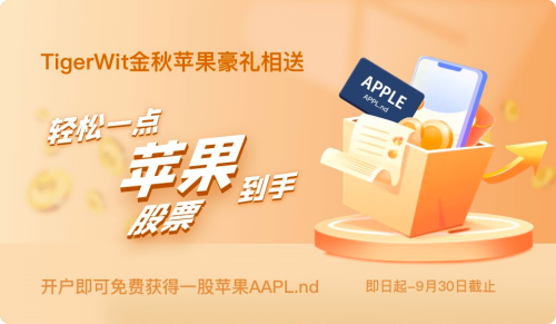 果粉们即将迎来最期待的苹果发布会,随着万众瞩目的iPhone14上市,TigerWit也为大家准备了“苹果”豪礼相送!即日起至2022年9月30日,所有在TigerWit成功开户的用户即可免费获得苹果股票一支!
