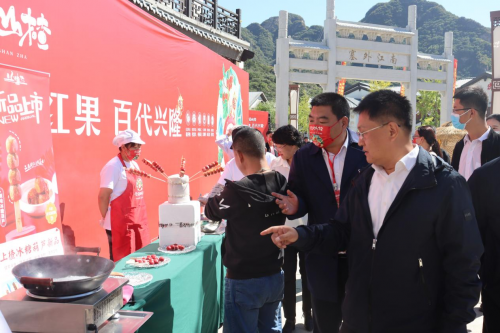 开幕仪式结束后,与会领导、嘉宾、媒体到“品牌、产品展示区”、“产品品鉴区”、“品牌营销互动区”进行了进一步参观,体验兴隆县农特品牌和产品,感受非遗文化,参与“串糖葫芦”“炒山楂”“炒栗子”“手工搓果丹皮”等手工艺展示特色活动。