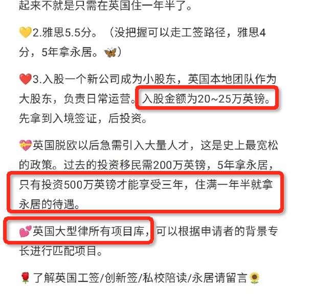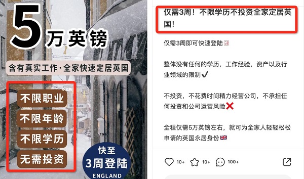 他们会告诉您这个项目不限职业,不用学历,不限年龄,甚至不用投资!仅3周,不到6万“润”英国等等,而且还要加一句这就是名副其实的工签。如果真的只要交钱就可以拿工签,什么都不需要评估,那么不但低估英国人的智商,也在侮辱自己的智商。
