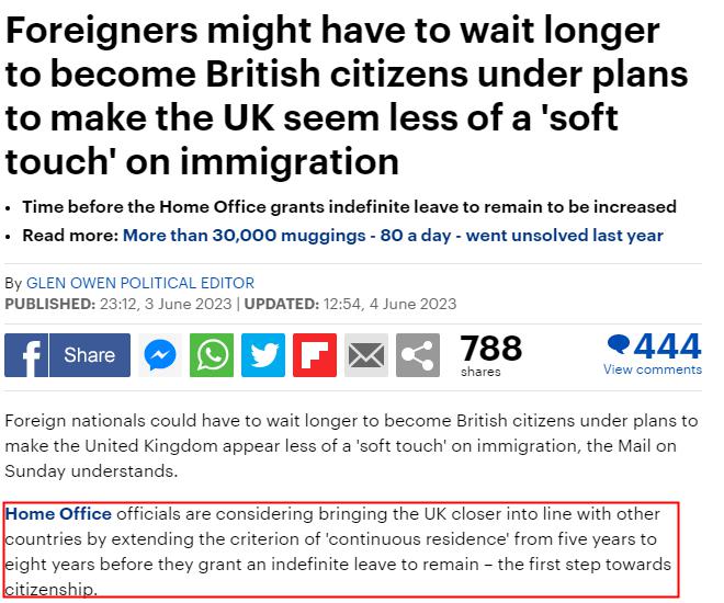 在英国移民政策可能会逐步收紧的情况下,英国内政部正在考虑将获得英国永居的5年路径或将延长至8年!正在考虑的其他变化还包括:要求申请人在英国工作或上学2年,必须10年无罪记录,取消对65岁以上人群的Life in the UK考试豁免等。总体来看,门槛是越来越高了。