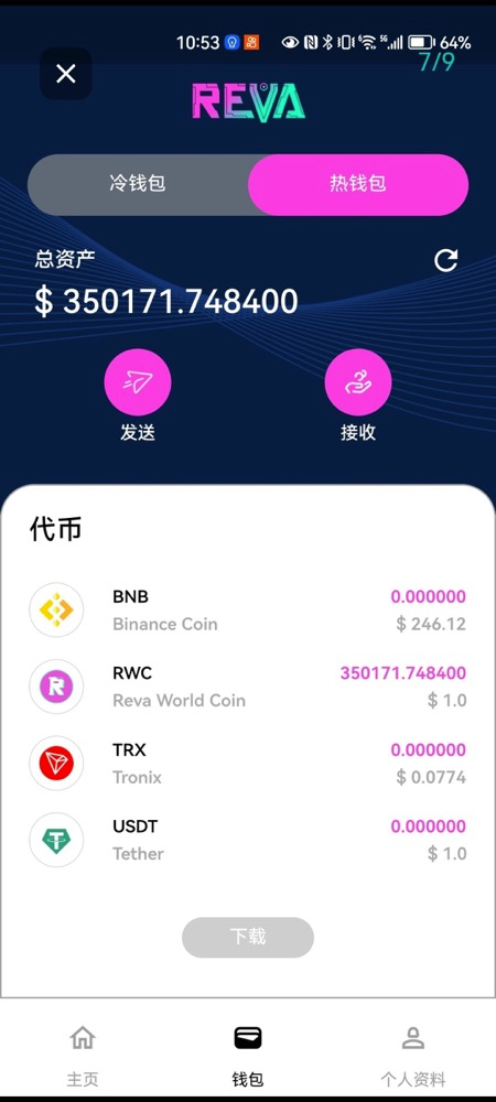 通过首页的云铸造,消耗钱包里的RWC进行铸造。从而产出 RWT,随着交易量的快速增长,RWT变得越来越值钱是必然的。RWT产出在热钱包,需要转入冷钱包再去交易所闪兑,RWT可以在薄饼交易所直接兑换 USDT,也可以自己存起来,也可以玩家之间交易。