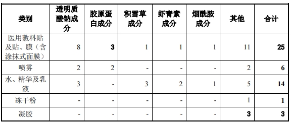敷尔佳目前各剂型的产品及数量