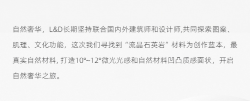 关键词:设计源·世界观|设计源·新力量|新包豪斯学院|探索设计源·发现西部之美|新设计·新精神|唯美L&D奢石岩板|唯美L&D陶瓷|唯美L&D岩板|新艺术|X岩板|5号石材|大都会|奢石岩板|艺匠·花园|极速焕新家|安藤清水模|自然共生|7度微光|皮纹岩板|布纹岩板|新艺术