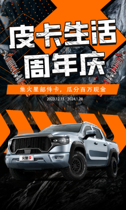 皮卡生活APP是一款为提升、丰富皮卡用户“车生活”体验,联动各圈层KOL,可实现分享、交流、购车、用车等客户的多样性需求,为皮卡车主带来更多美好与新鲜灵感,赋能生活幸福感的产品。此次周年庆活动面向皮卡生活APP注册用户,可谓是惊喜多多,福利满满。
