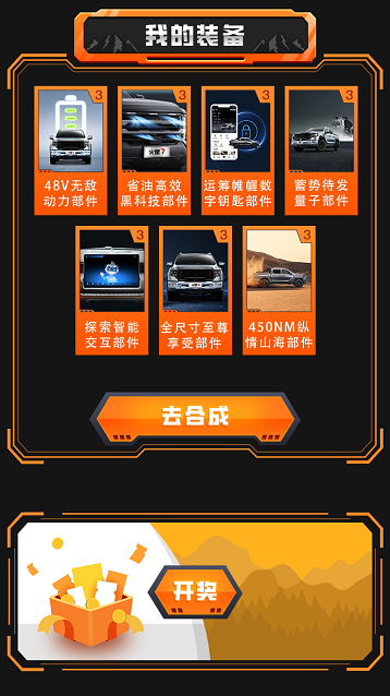 2023年12月19日-2024年1月28日期间,凡下载并成功注册皮卡生活APP的新老用户,即可通过使用APP功能获得 “48V无敌动力部件”“ 全尺寸至尊享受部件”等七种火星部件卡,通过集齐48V无敌动力部件、全尺寸至尊享受部件、450NM纵情山海部件、省油黑科技部件、运筹帷幄数字钥匙部件、探索智能交互部件、蓄势待发量子聚力部件七种火星部件,合成火星登陆卡。1月26日-1月28日期间,点击登陆卡就能瓜分百万现金,想想都令人心动!